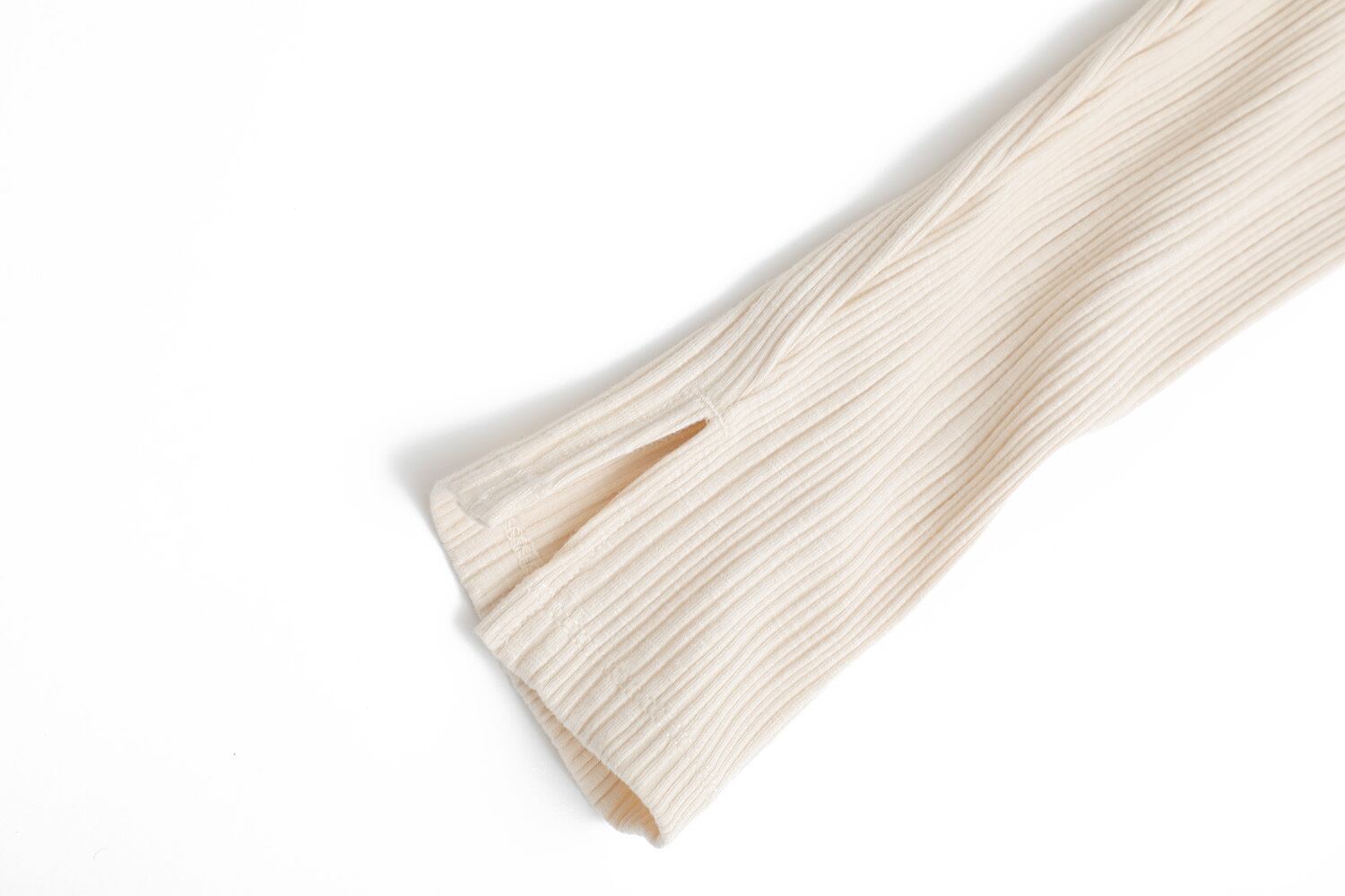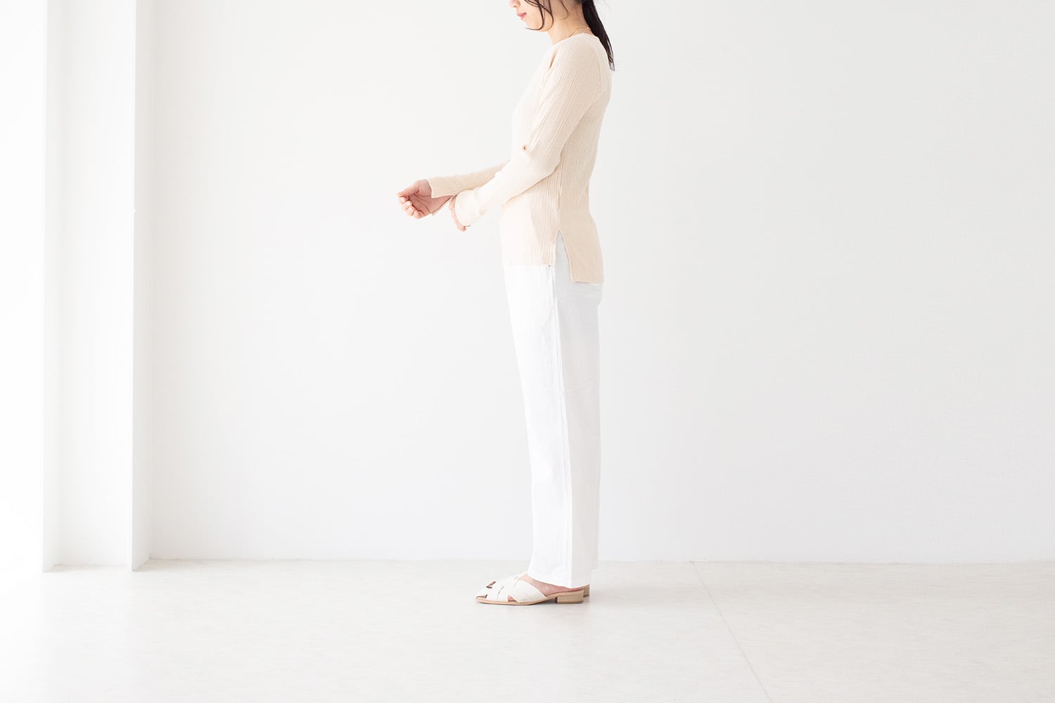 袖口や両サイドの裾に入れたスリットでさりげない抜け感をプラスしています。