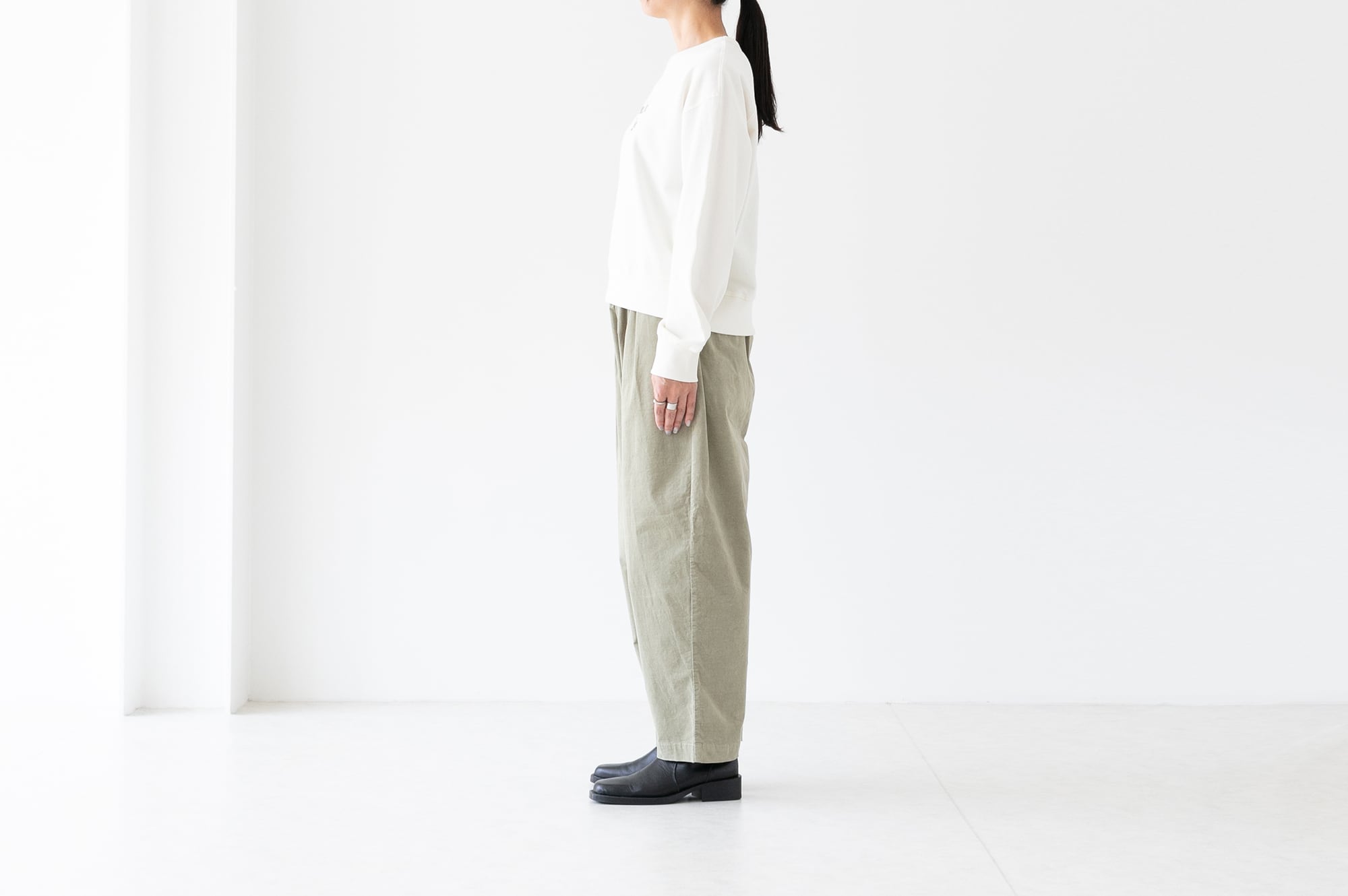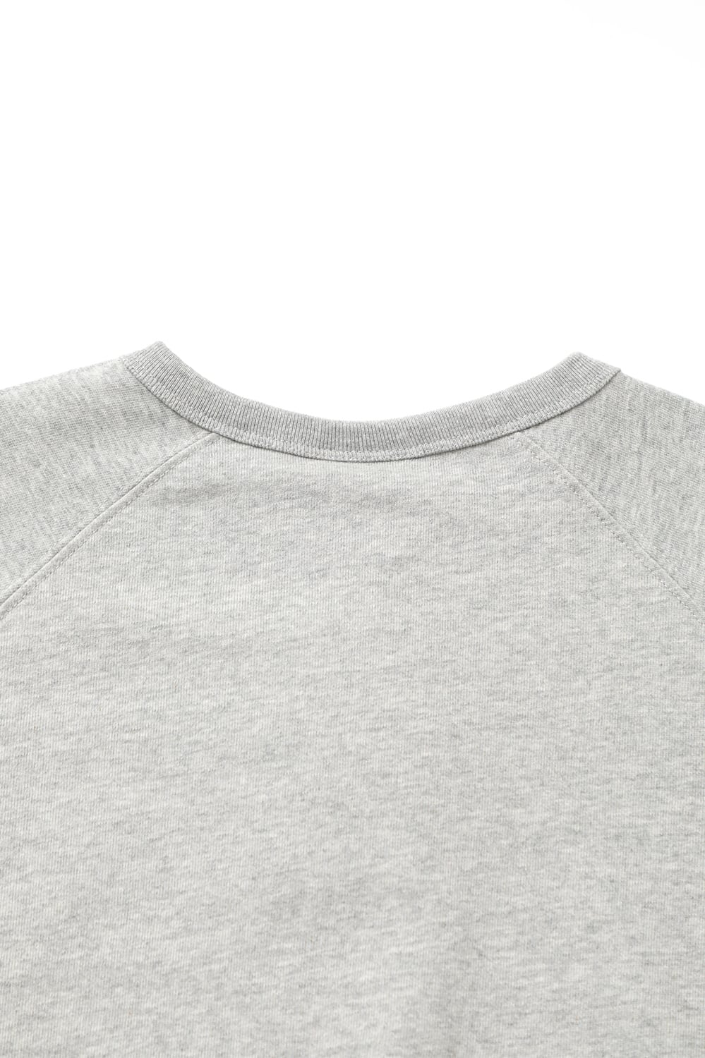 一見シンプルなスウェットに見えますが、後身頃の袖はラグランになっているの変形シルエット。後身頃をラグランにすることで、手の上げ下げや動作が楽になる理に適ったデザインです。