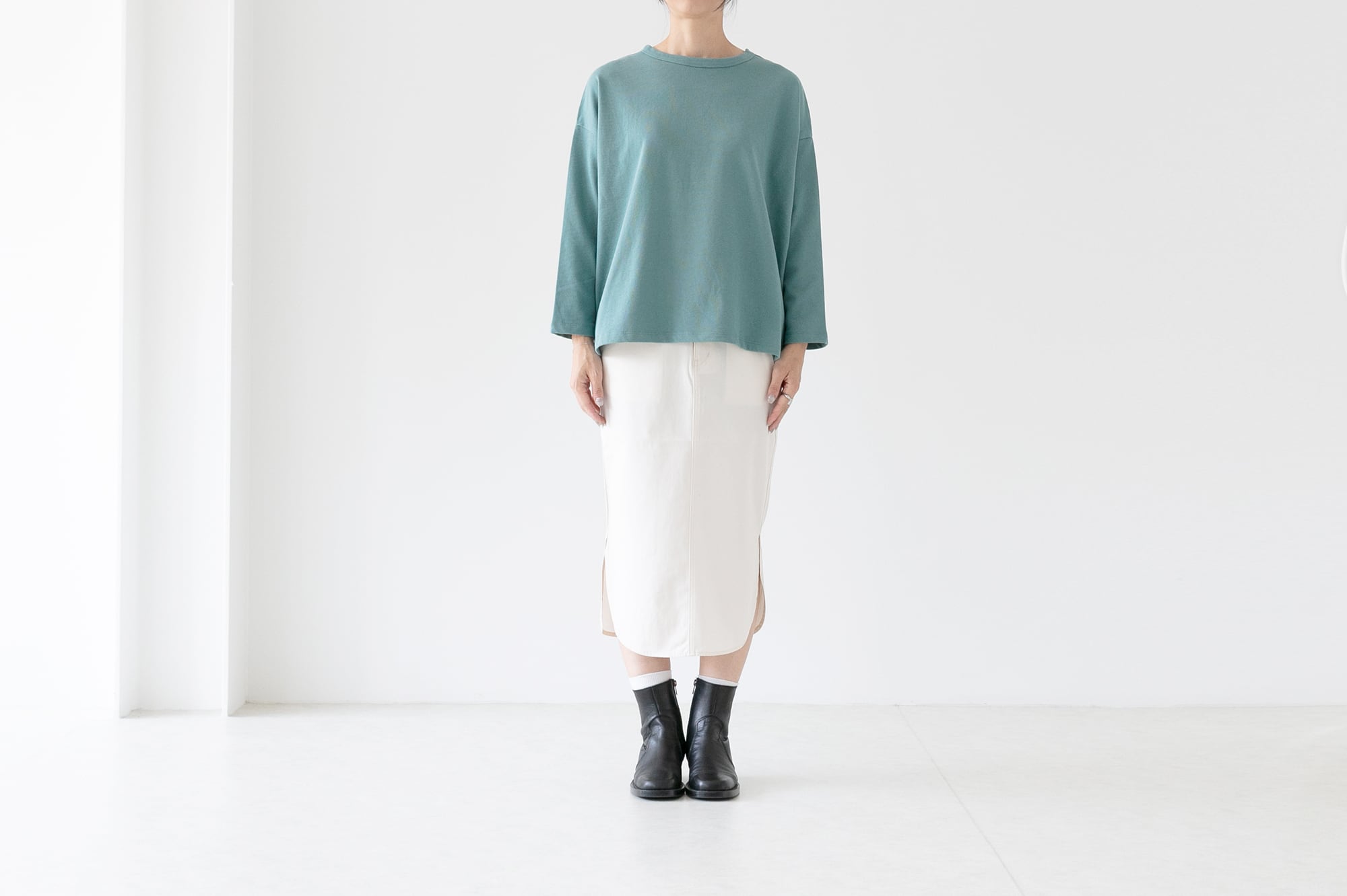Tシャツ生地とスウェット生地の中間のような軽やかなウエイト感のミニ裏毛を使用したクロップド丈ポンチョTEE。