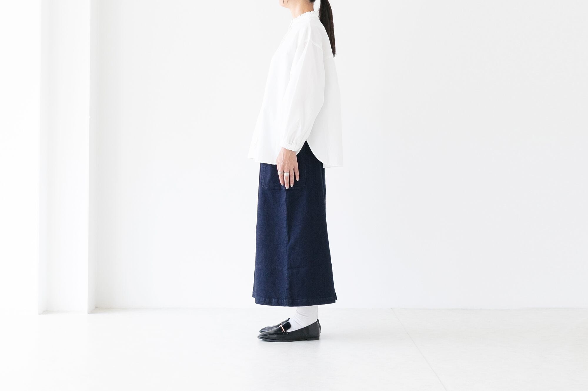 袖口はゴムを入れて自然なギャザー感のある袖になっています。深めに入った裾のラウンドは抜け感もあり、お尻が隠れる丈ですがすっきりと着用していただけます。