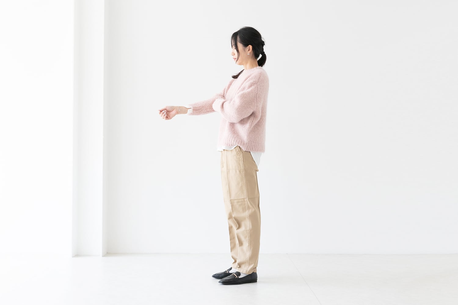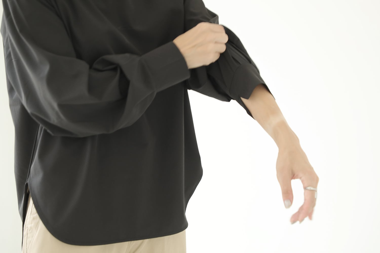 ラウンドした裾は気になる腰回りを隠してくれます。袖口カフスの内側にスリットがあり、カフスの綺麗なシルエットを保ちつつたくし上げも可能です。