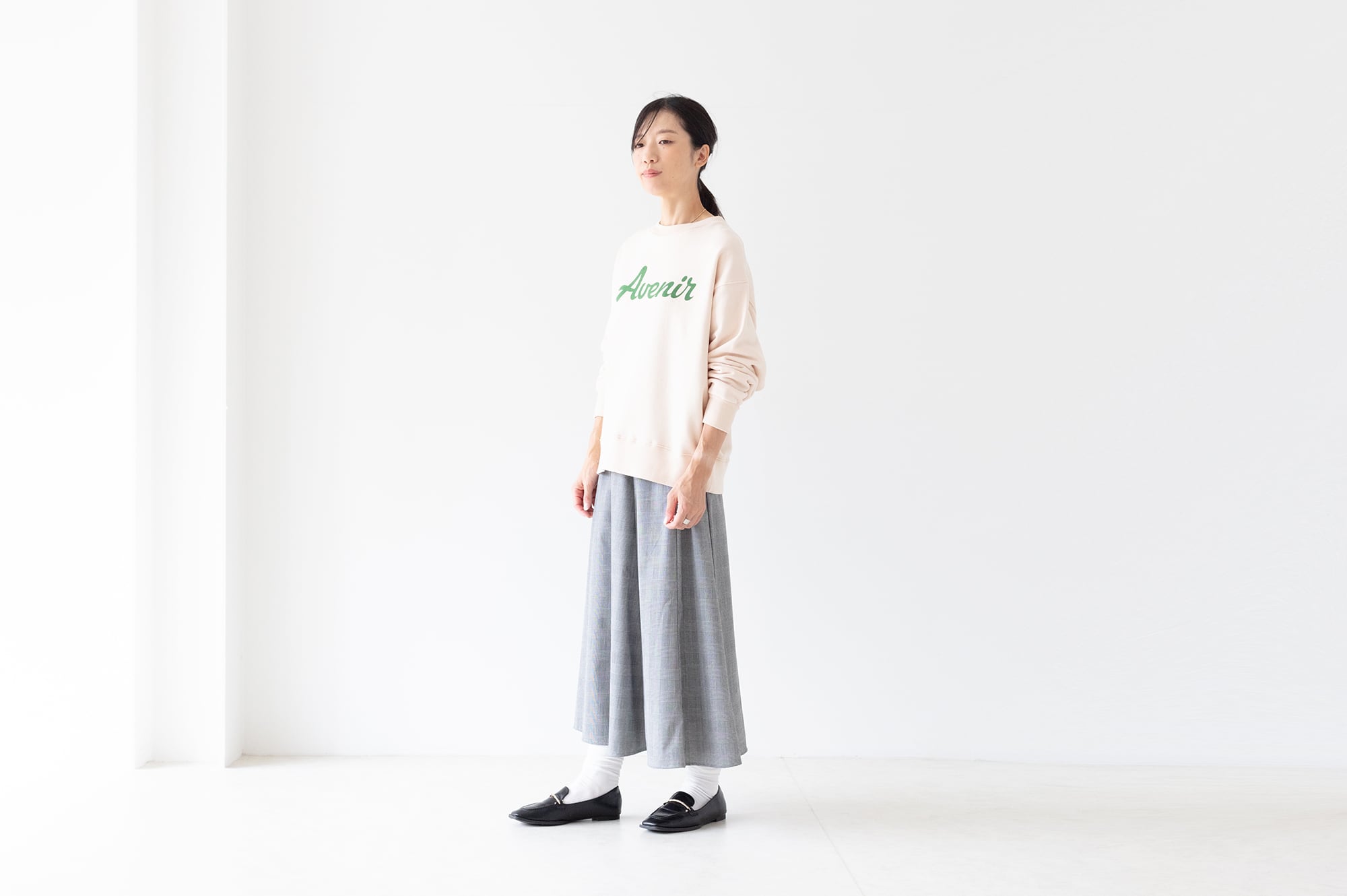 裏微起毛 - クルーネックプリントスウェット  Avenir