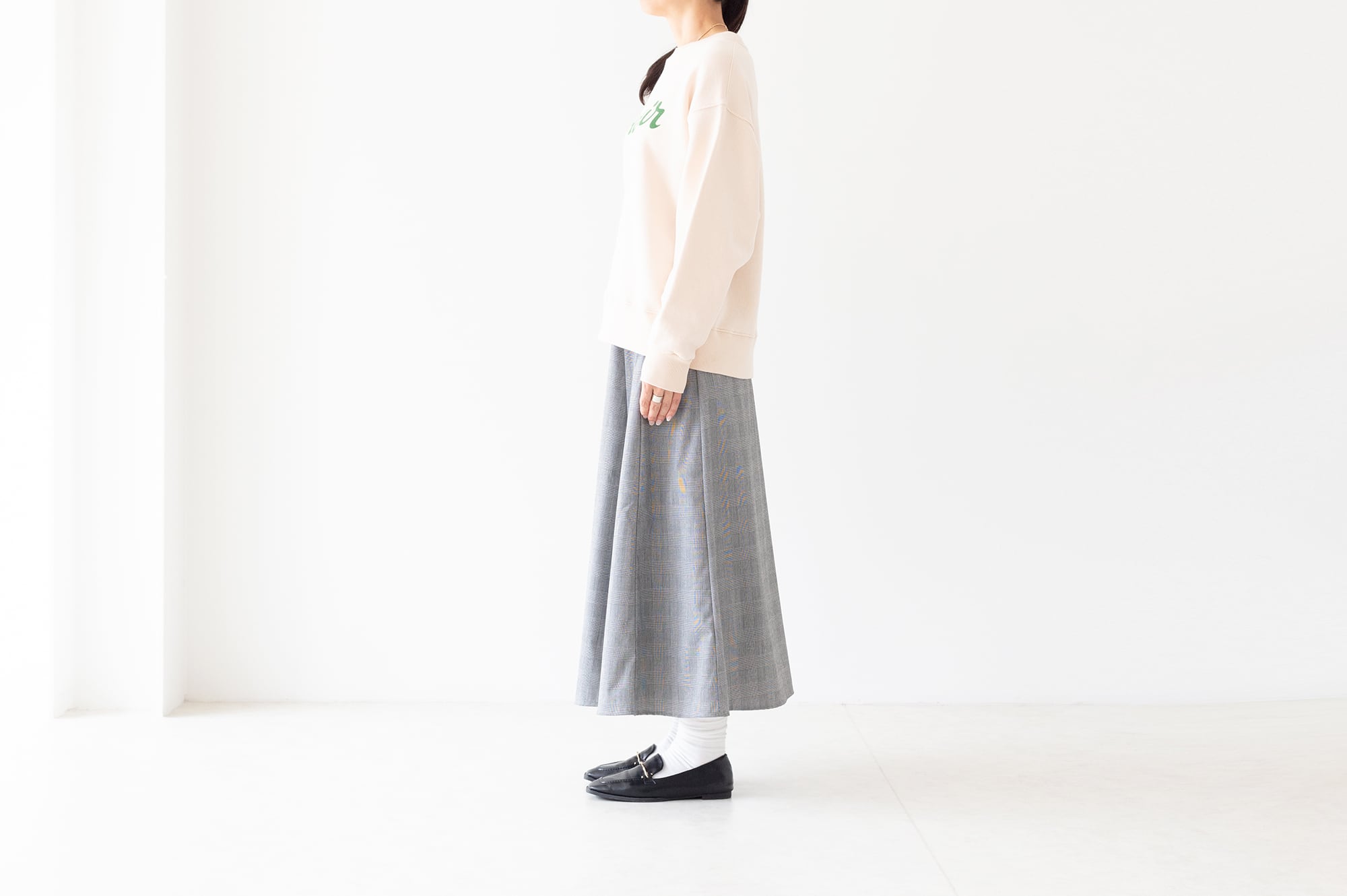 表面にくる上糸には細番手の糸を使用し、カジュアルな印象が強いスウェット素材ですが、目面が均等できれい目なアイテムとも好相性です。