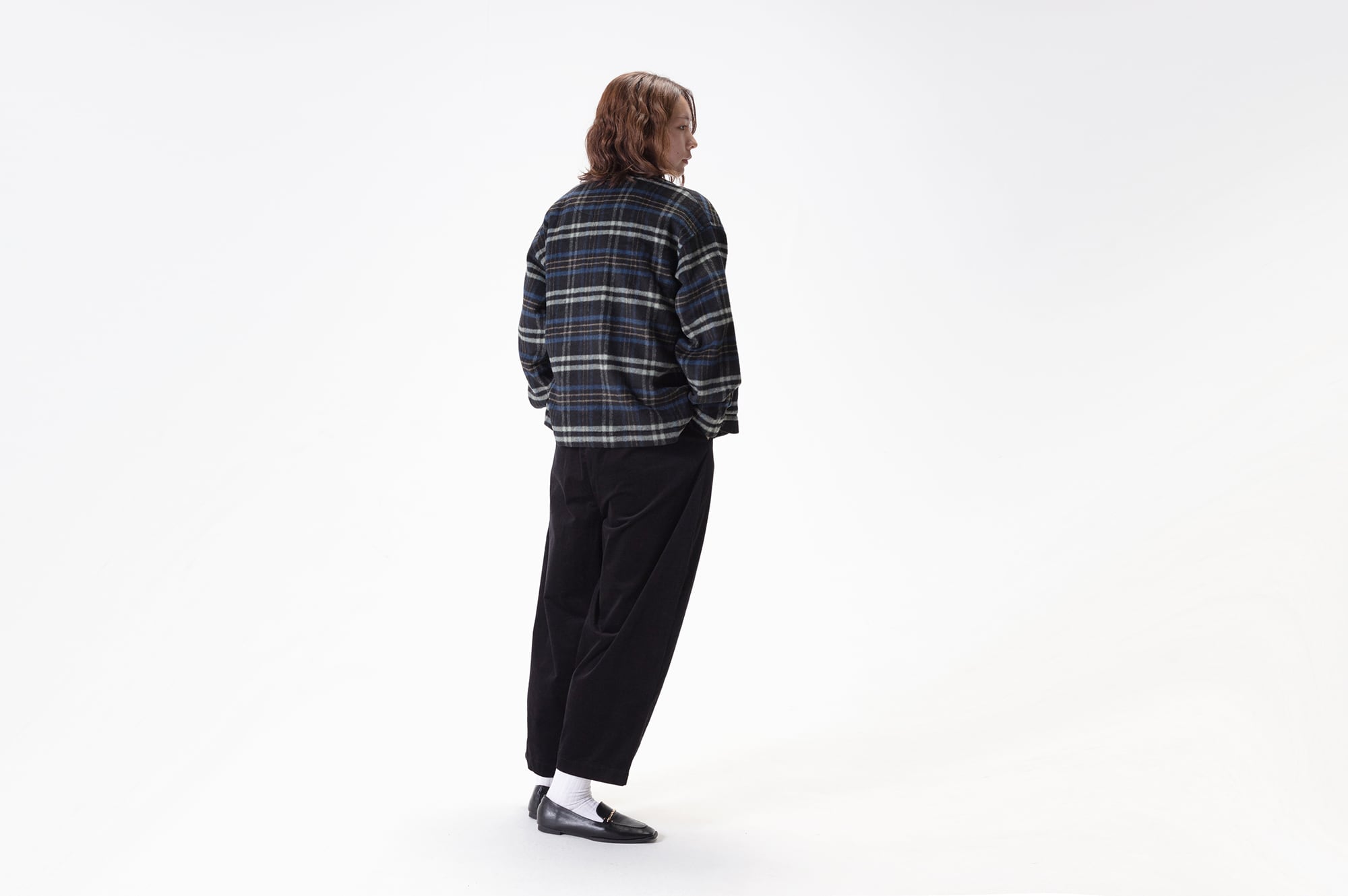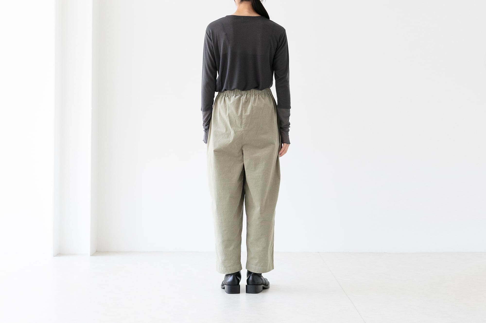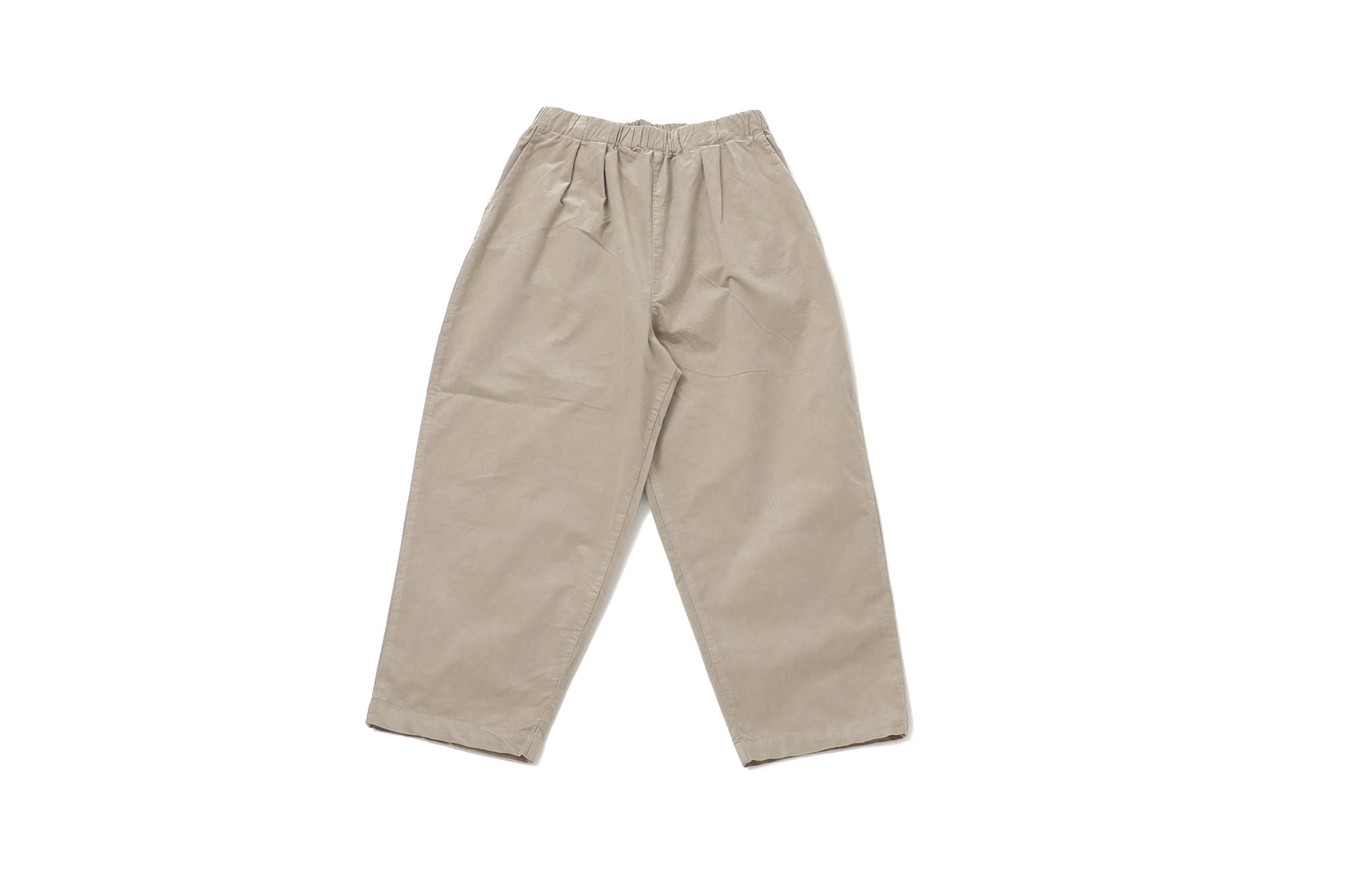 やや薄手で細畝のシャツコール生地に洗い加工を施して、ソフトな風合いとナチュラルなワッシャー感をプラスしたイージーEGGパンツ。