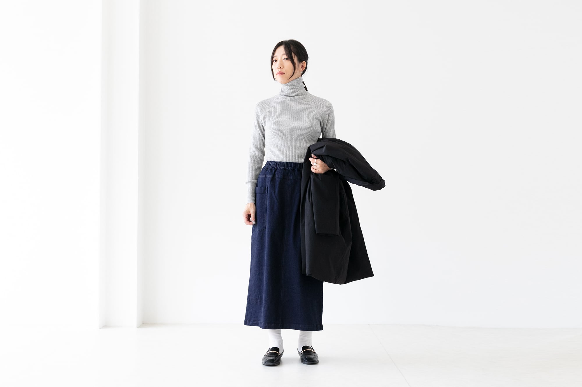 長めの衿で折り返したり、ラフに着用したりアレンジが広がります。