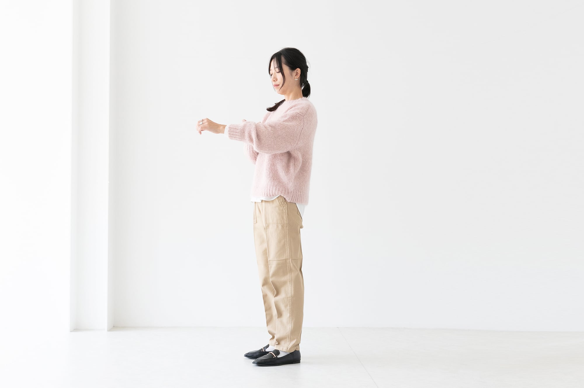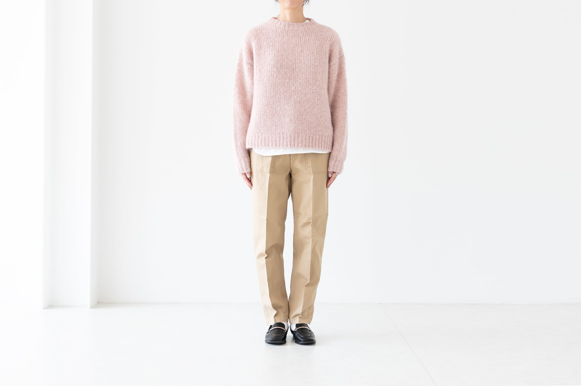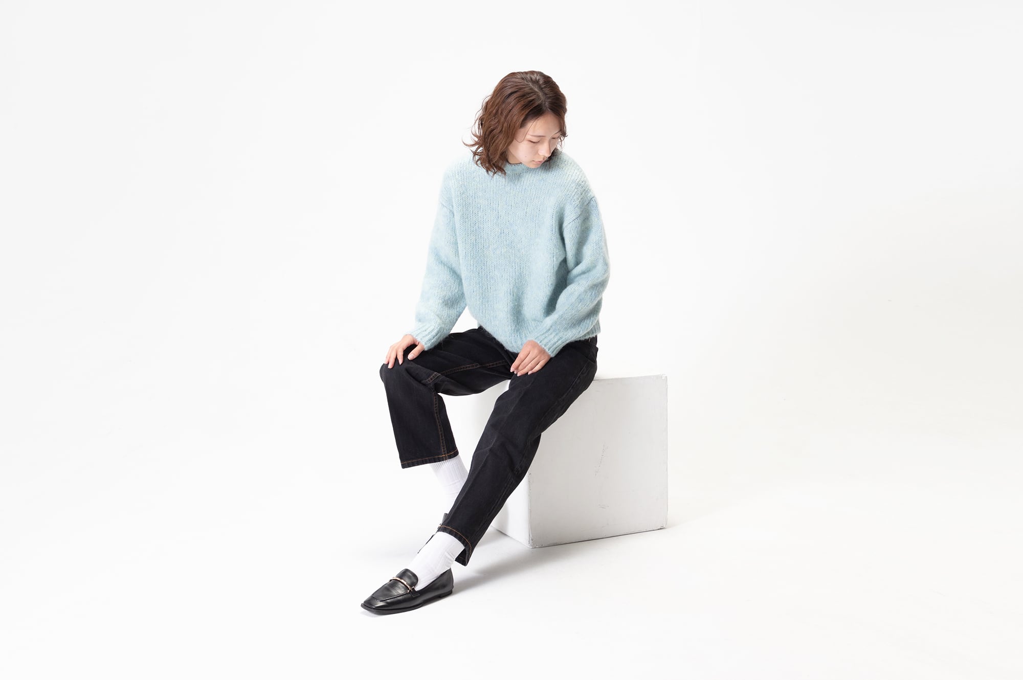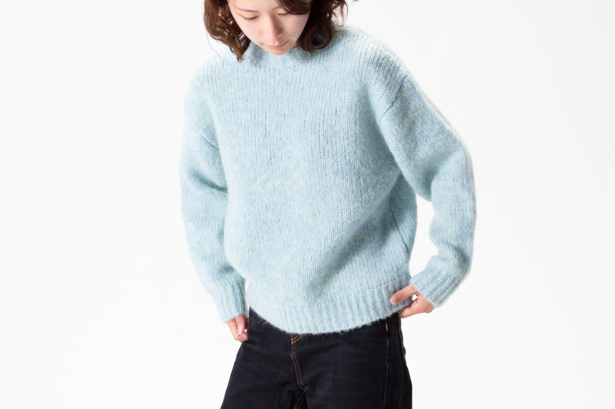 フワフワとしたモヘヤの毛質を活かし、軽く柔らかに仕上げたモヘヤニットのプルオーバー。