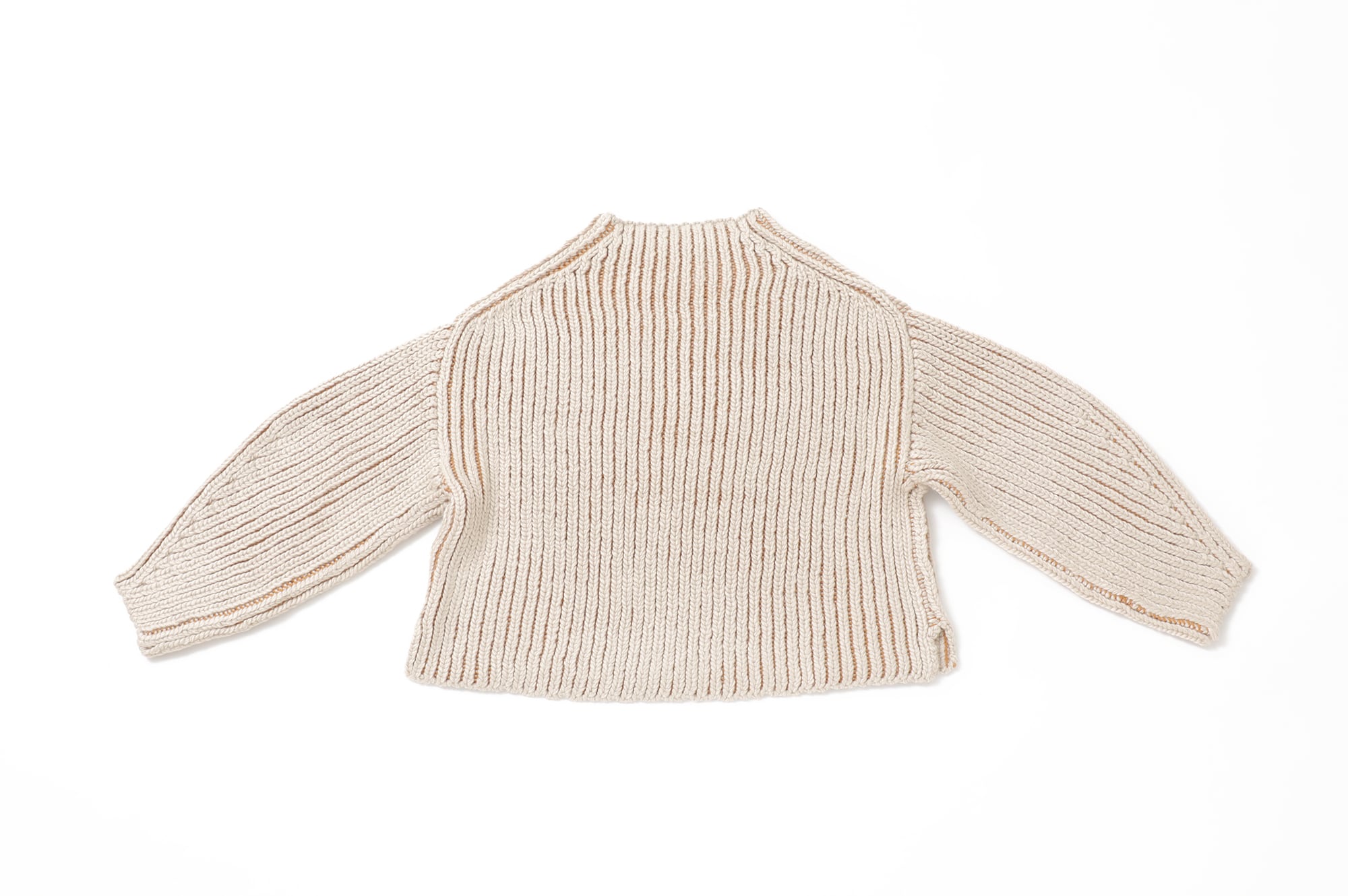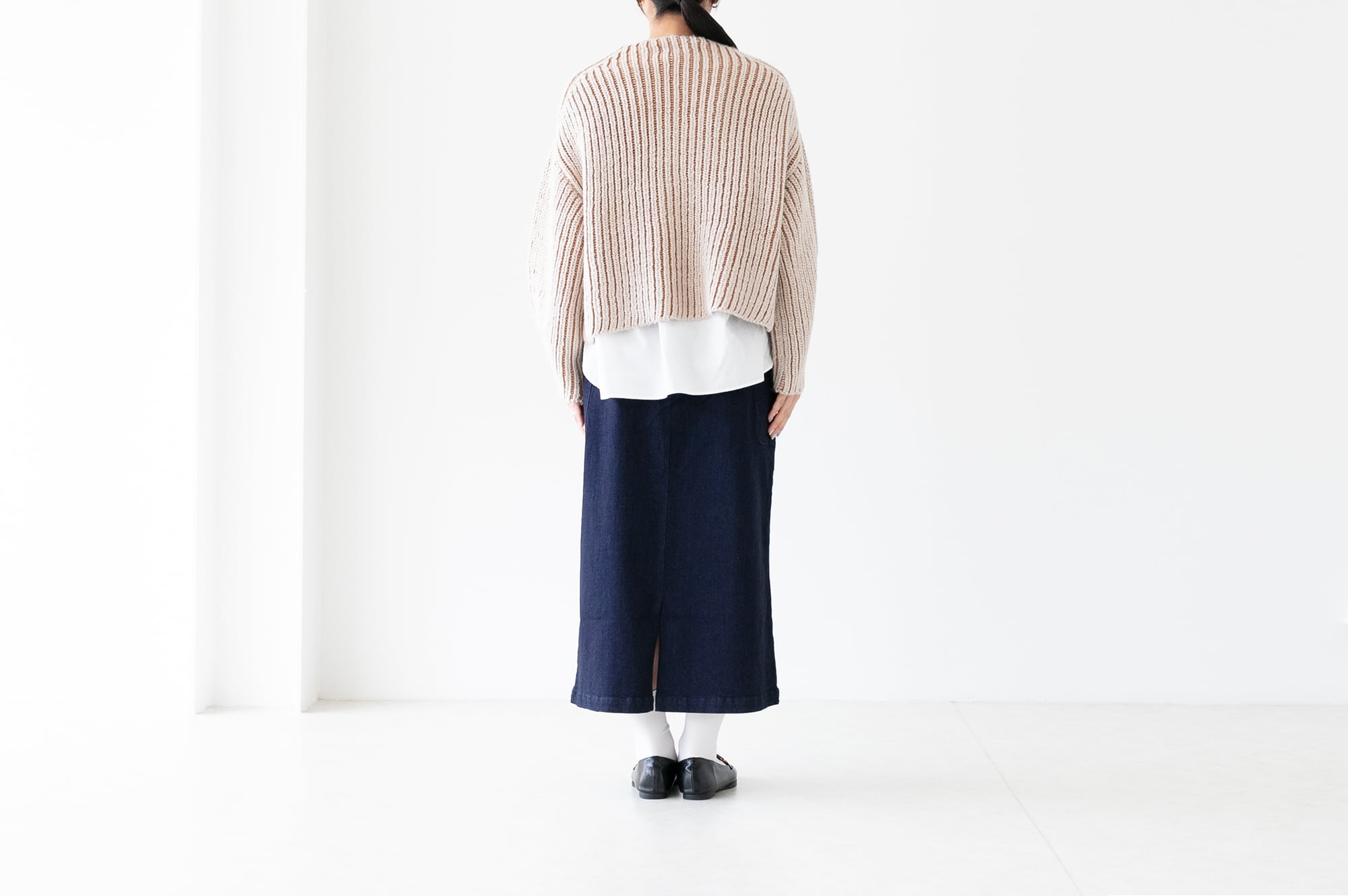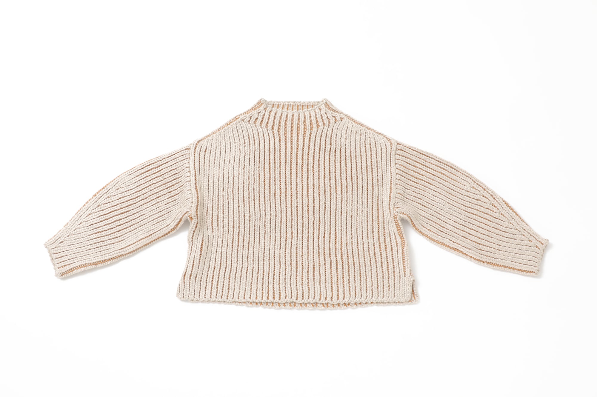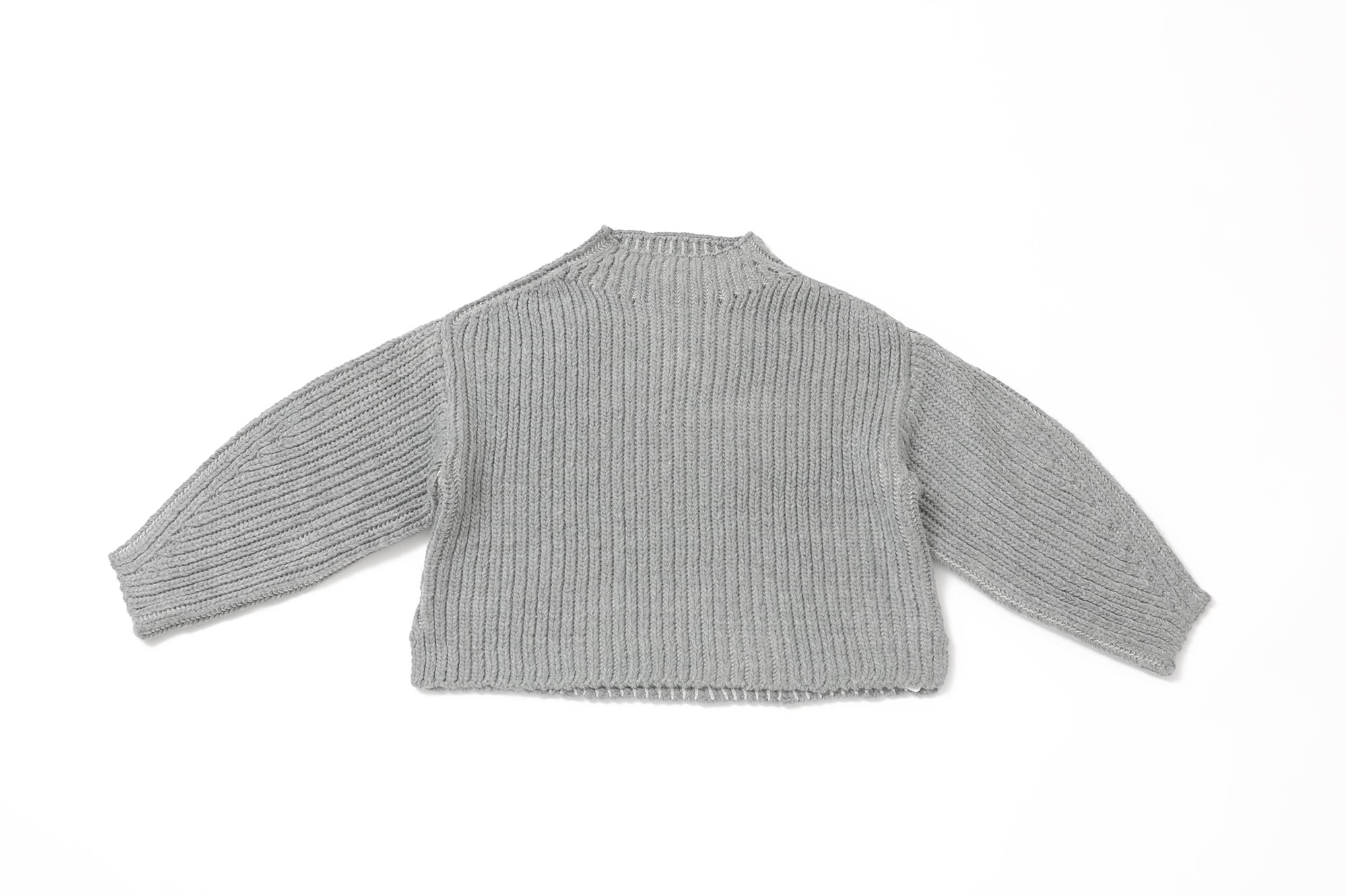 ローゲージ でざっくりと編み立てした、ショート丈のリブニットです。