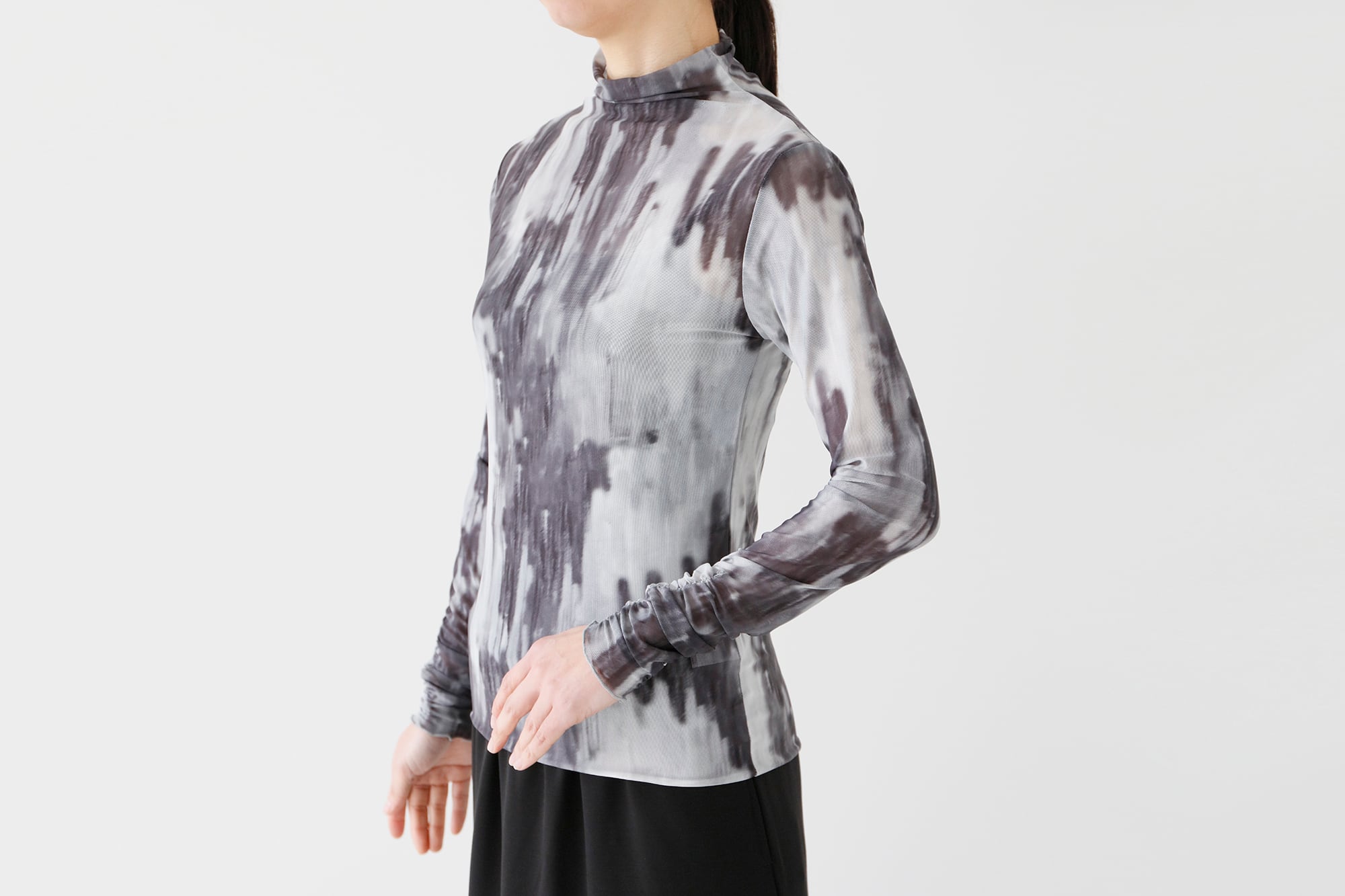 軽くて薄く、独特なシアー感が魅力の1枚。360度ストレッチ性のある素材で優しく体にフィットします。