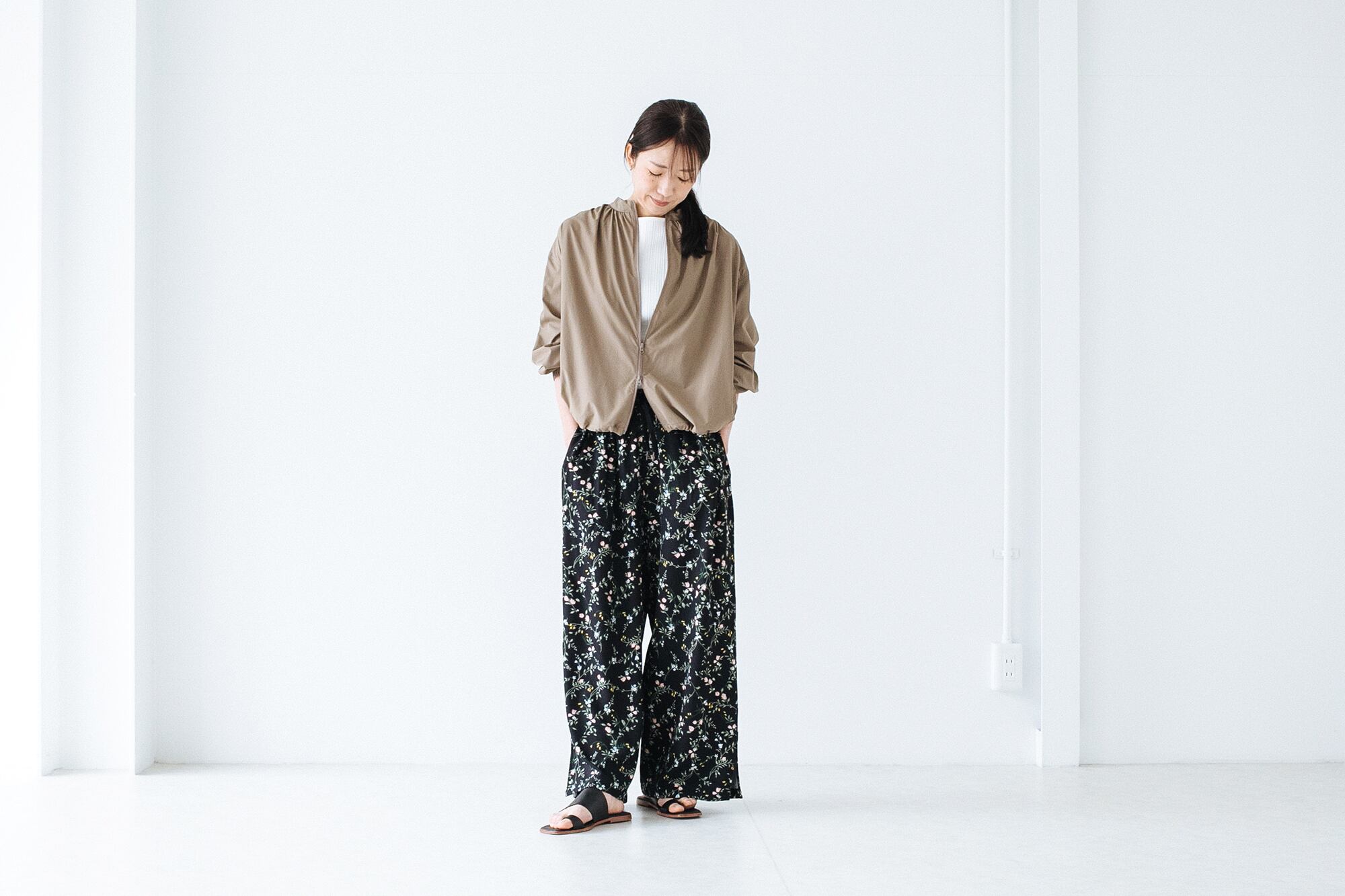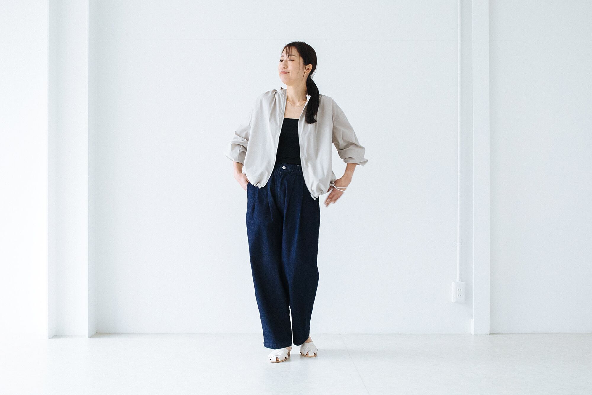 ナイロン素材ですがマットで滑らかな質感でドレープ感もあり、スポーティーになりすぎずほかの色々なテイストのアイテムとも合わせやすいです。