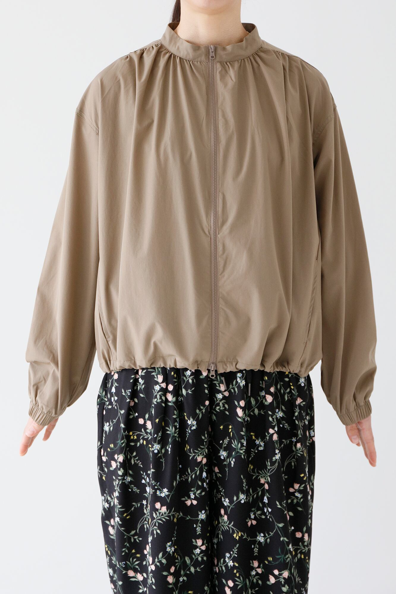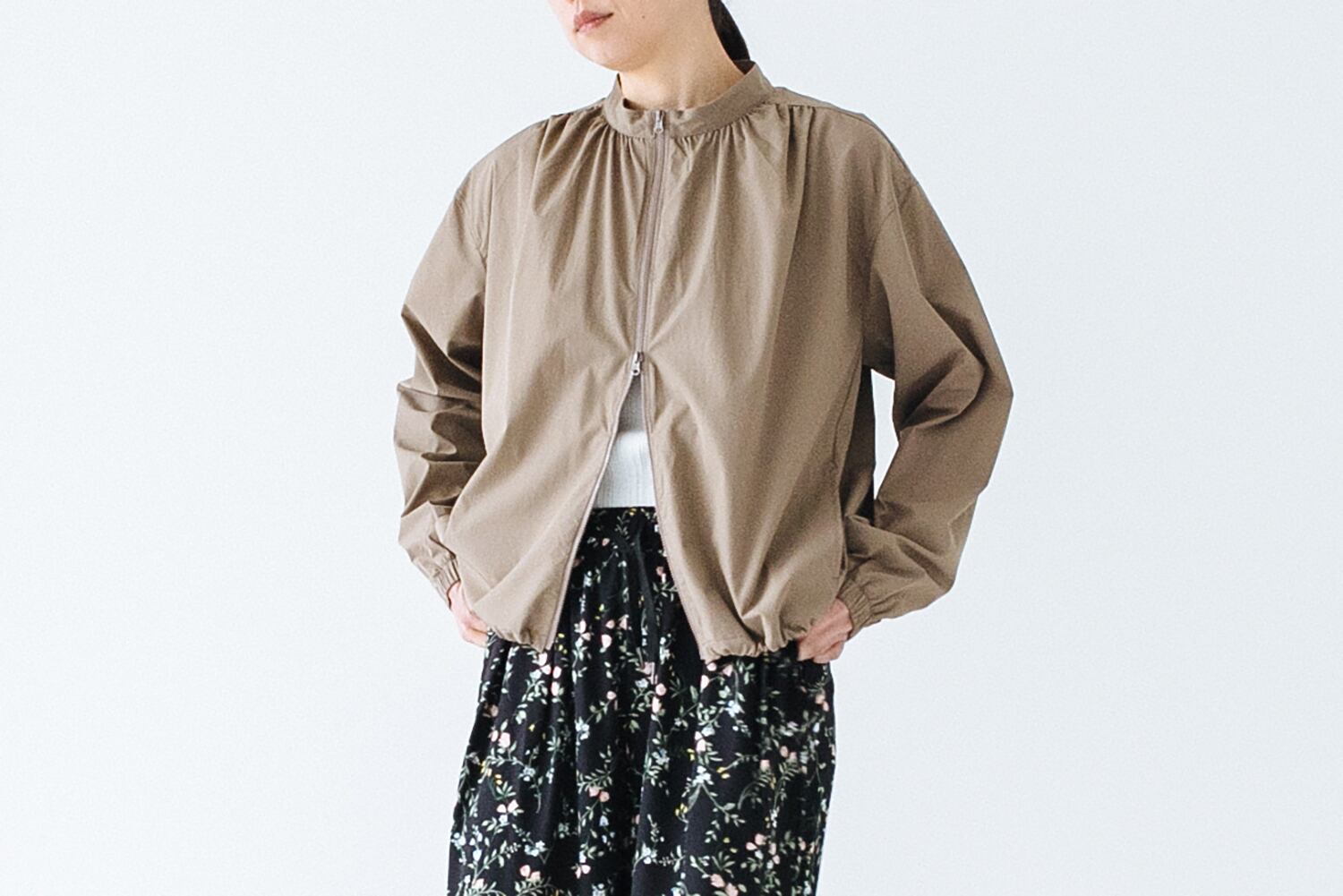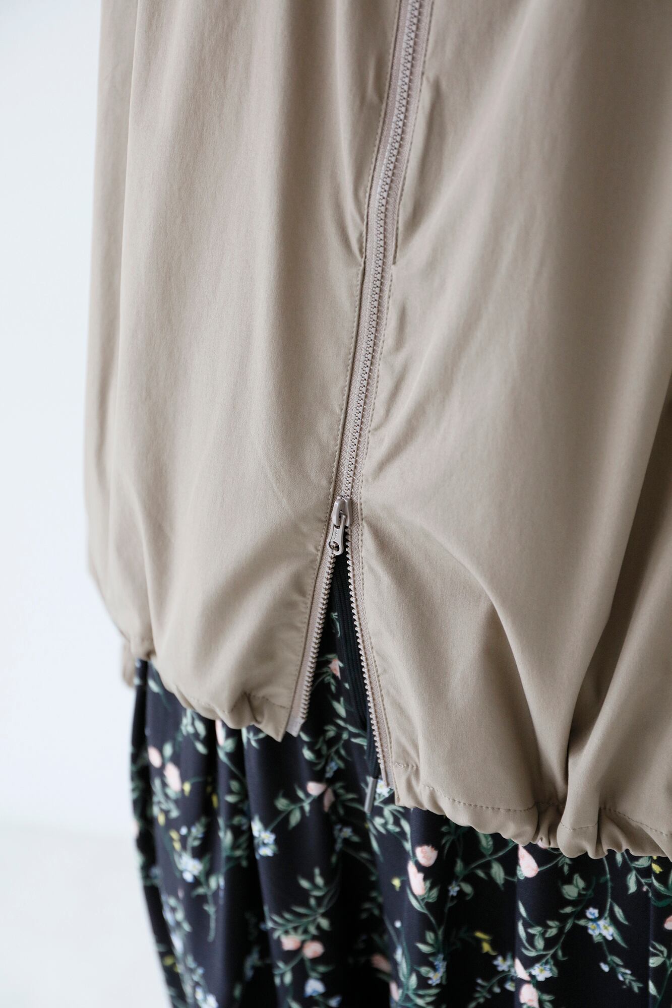 裾のドロストやダブルのZIPでシルエットの変化を楽しめるます。袖口はゴムが入っていますので簡単にたくし上げも決まります。