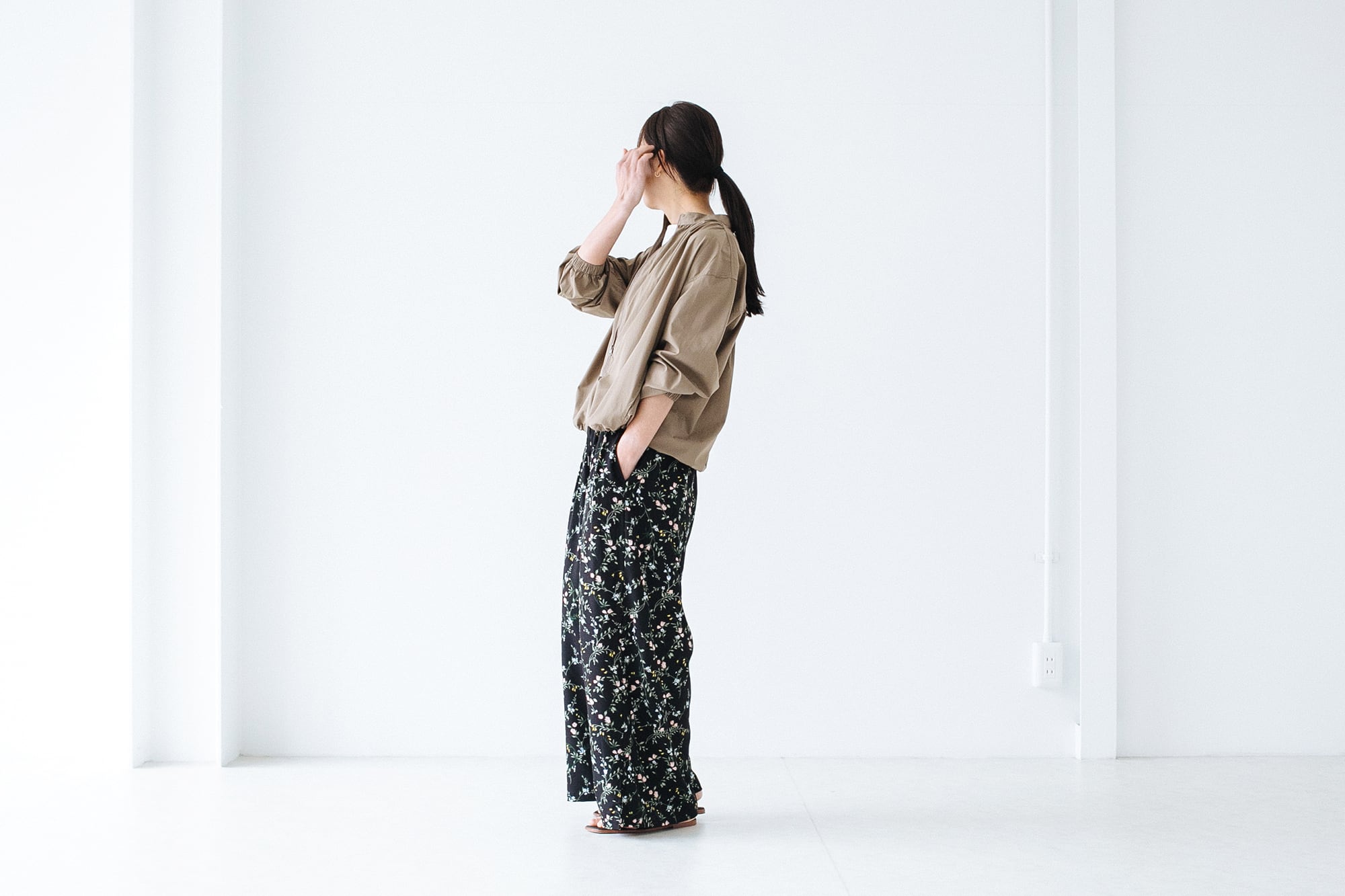 シワになりにくいさらりとした質感の生地感はロングシーズン着用していただけます。
