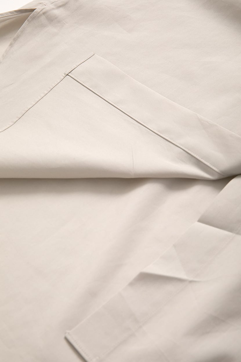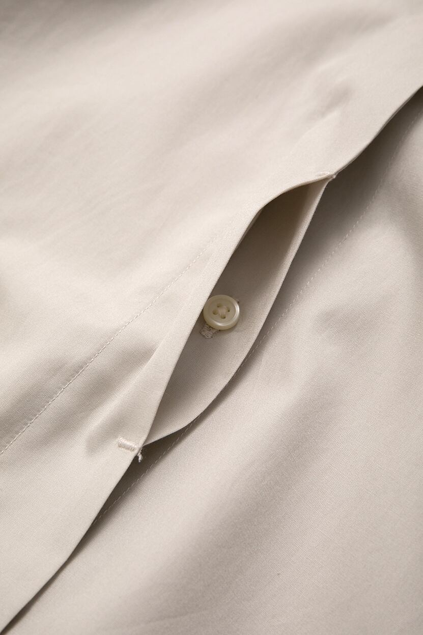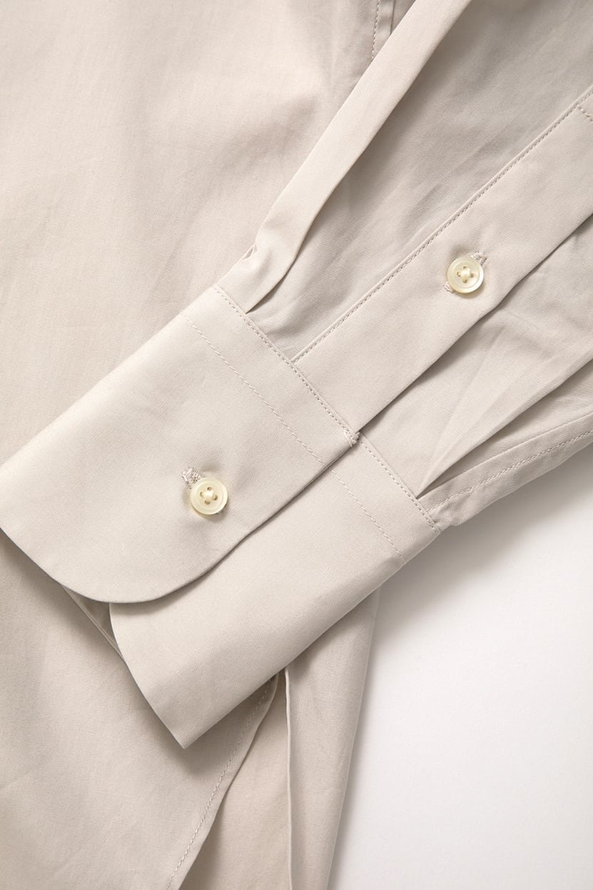 毛羽感をおさえたクリアな表面感とナチュラルな微光沢が着る人を引き立たせる高密度のブロード生地を使用しています。