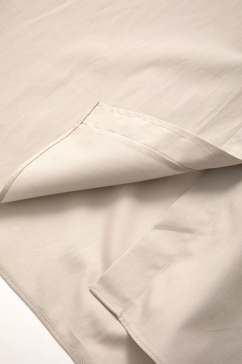 毛羽感をおさえたクリアな表面感とナチュラルな微光沢が着る人を引き立たせる高密度のブロード生地を使用しています。