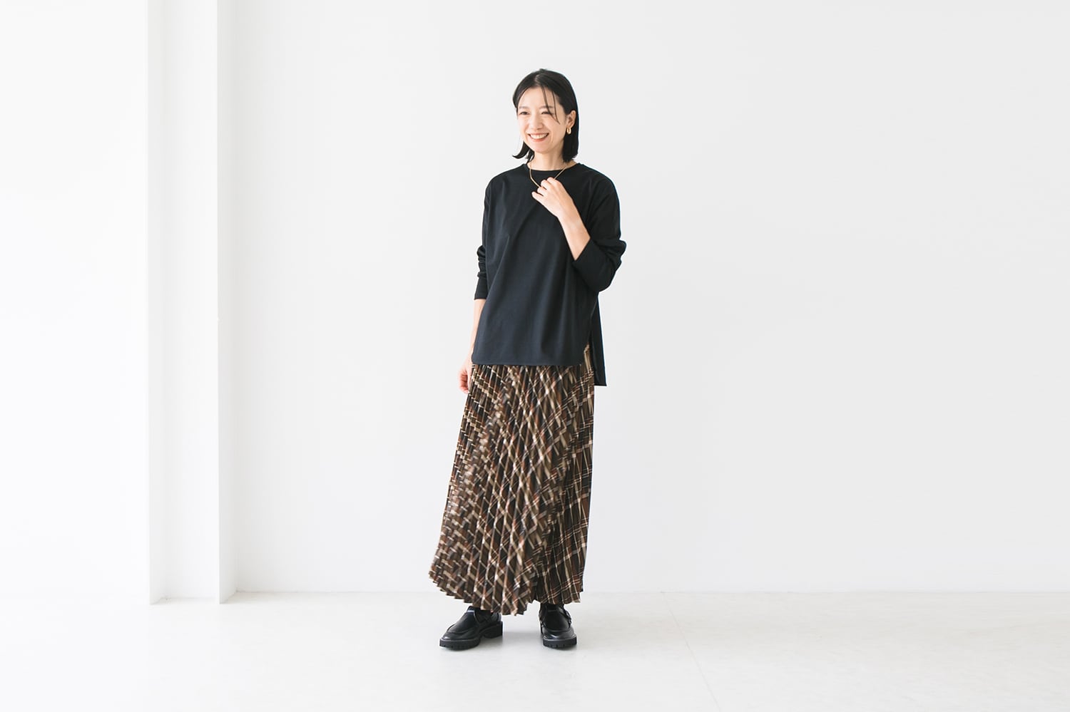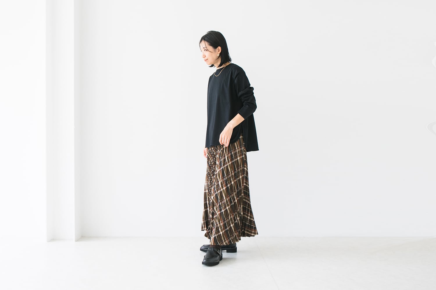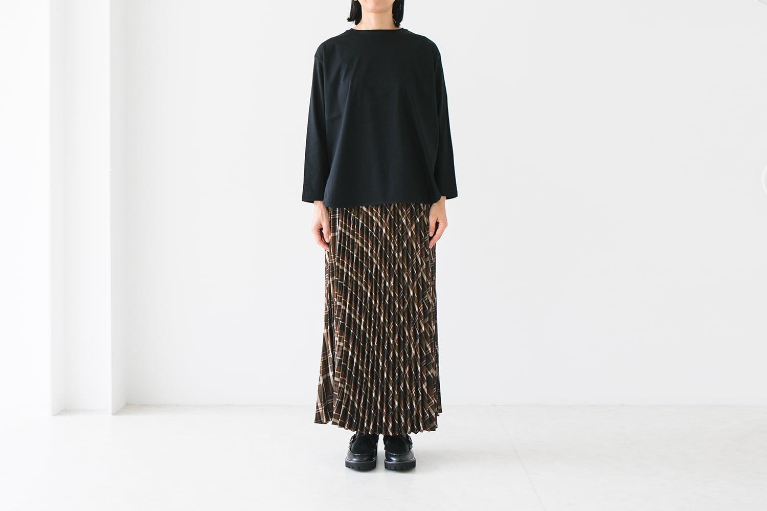 ラウンドヘムデザインはボトムを選ばず、1枚でも様になるアイテムです。ショート丈のアイテムの下に着用してレイヤードスタイルも楽しんでいただけます。