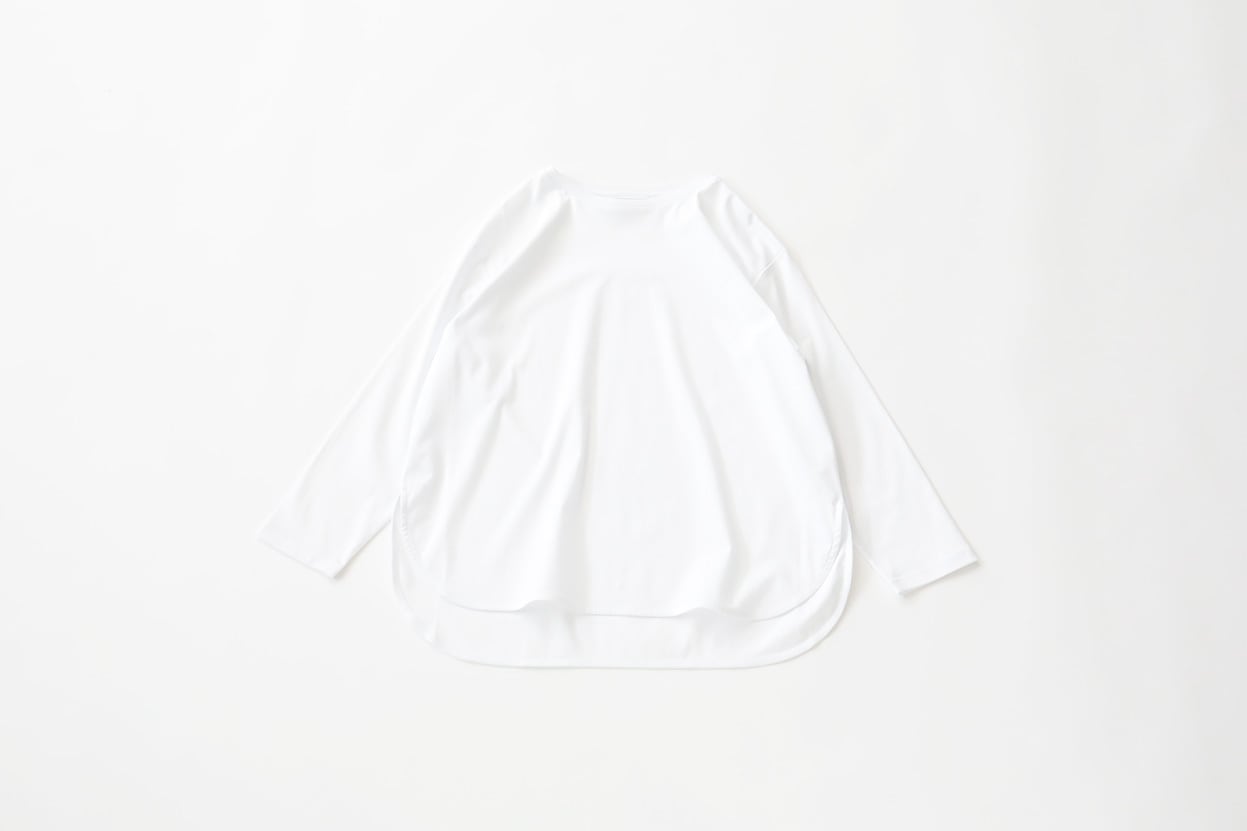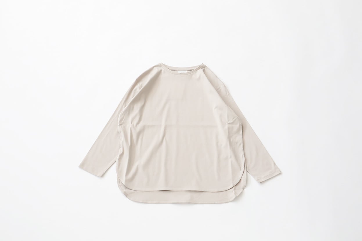 世界三大コットンであるスーピマ超長綿を使用したソフトで肌触りの良いスムース生地に、バイオシル加工を施し自然な艶と光沢をプラスしたラグジュアリーな素材で作成したラウンドヘム長袖TEE。
