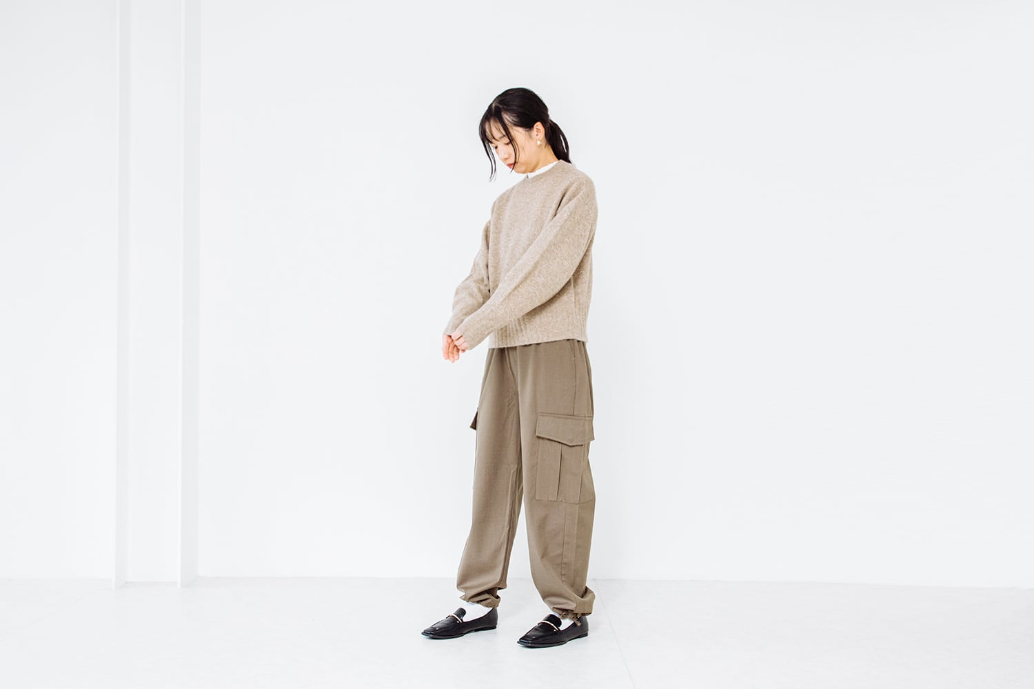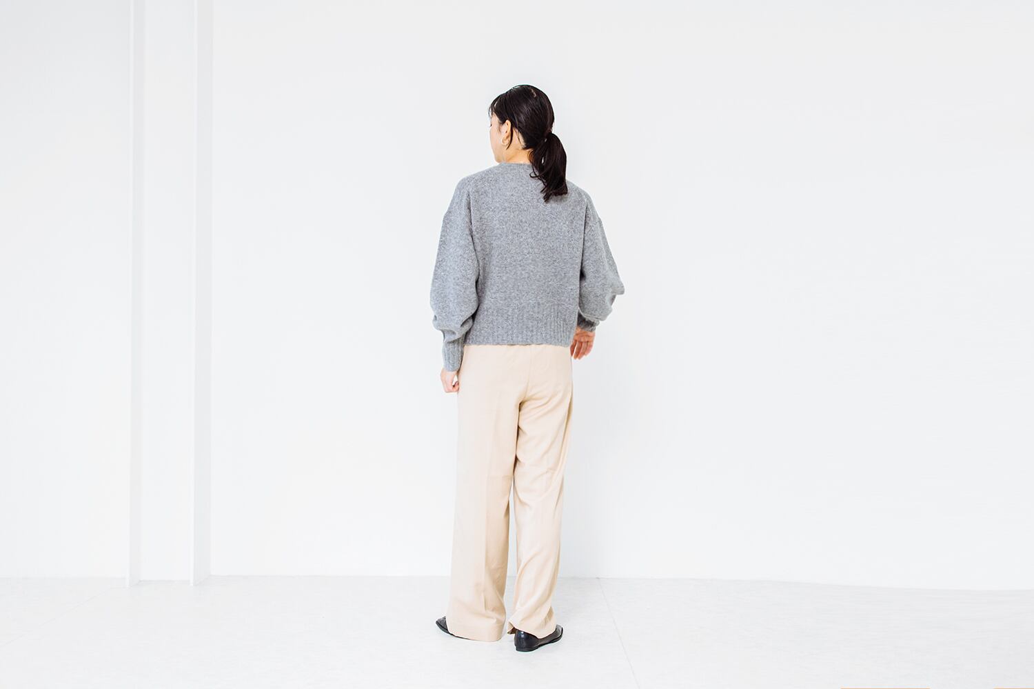 一見シンプルな見た目ながら、着用時のシルエットや細かなディテールの光るアイテムとなっています。カラーは杢調でそろえ、見た目にもウォーム感を感じられるヤクニットシリーズです。
