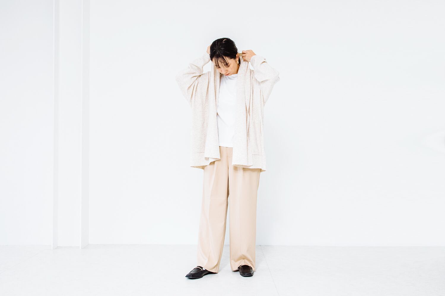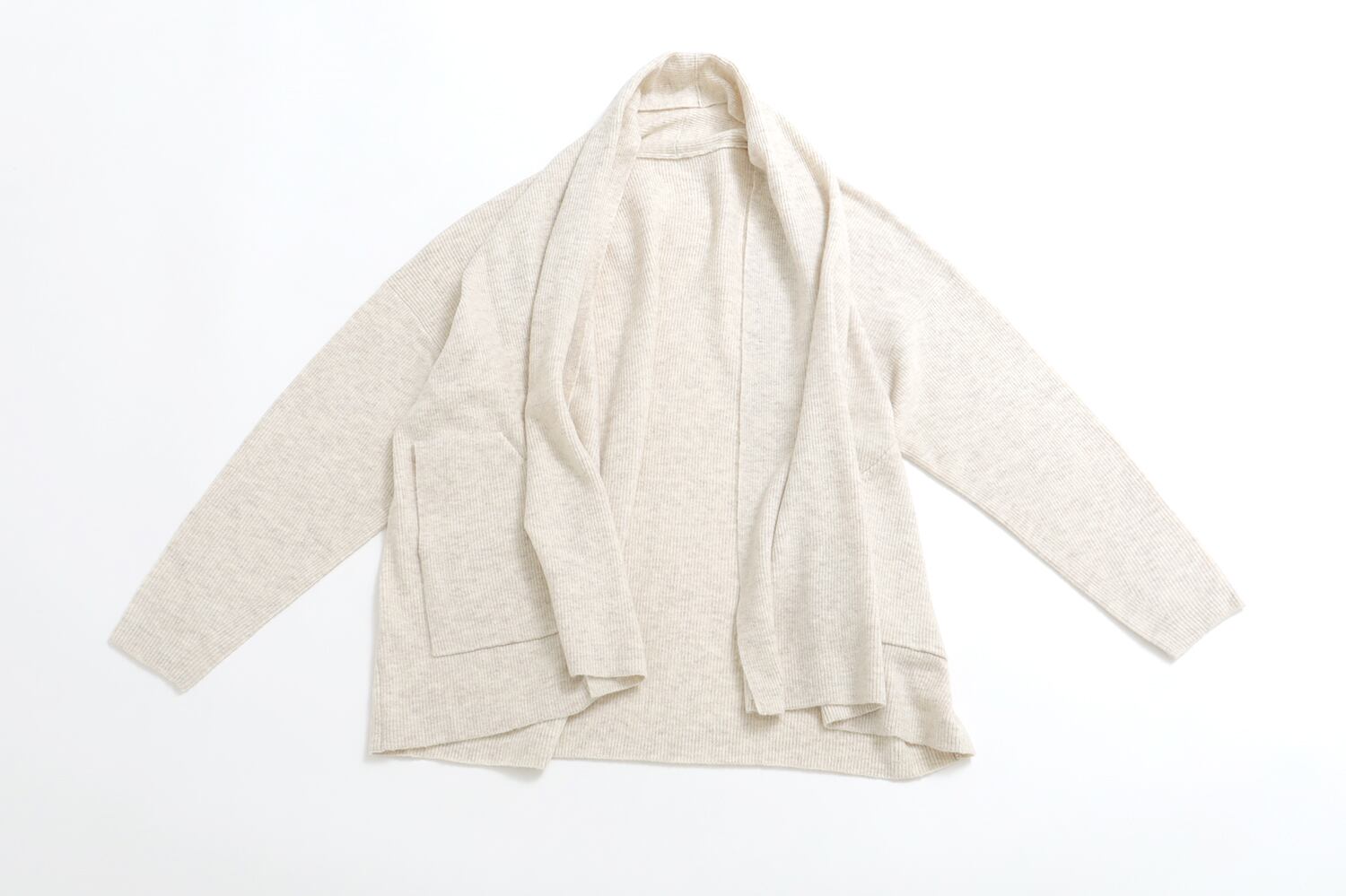 チクチク感もなく、素肌にしっとり馴染む着心地なので、半袖のTシャツやノースリーブトップの上からさっと羽織れるのも魅力。